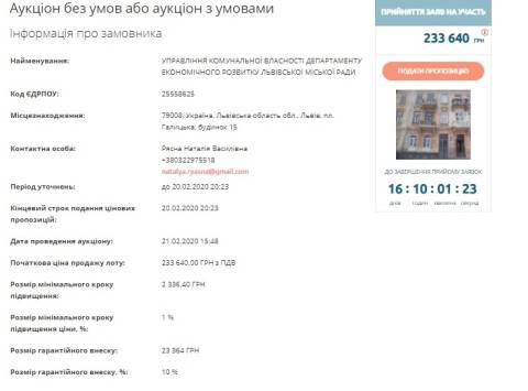 Аукціон стартує 21 лютого, а початкова вартість приміщення становить 233 640 грн.