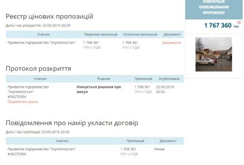 Аукціон стартував 24 вересня, участь у ньому взяло лише приватне підприємство "Укртехпостач", яке й зголосилося придбати приміщення за 1 768 361 грн. Його й оголосили переможцем. Додамо, початкова вартість приміщення становила 1 767 360 грн.