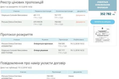 Аукціон відбувся 19 грудня, уяасть у ньому взяли Рінська Олена Олегівна та Опришко Соломія Миколаївна, які запропонували придбали приміщення за 708 000 грн і 707 777 грн відповідно. Переможцем аукціону обрали Олену Рінську.