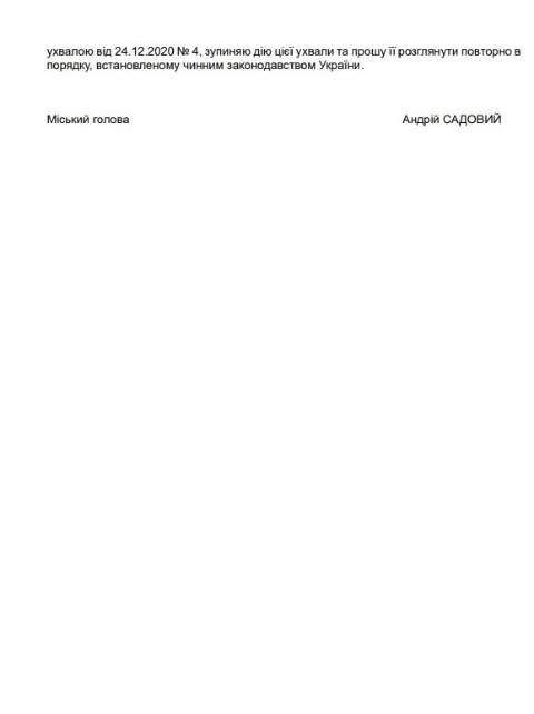 Андрій Садовий ветував п'ять ухвал, які депутати міськради прийняли на сесії 23 жовтня цього року.