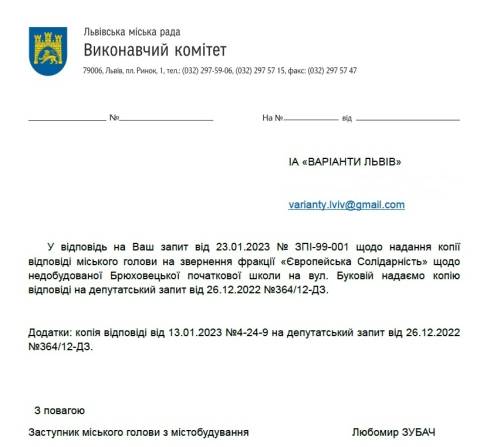Львівська міськрада не проводитиме службове розслідування щодо дій Юрія Лукашевського та Інни Свистун у ситуації з недобудованою школою в Брюховичах.