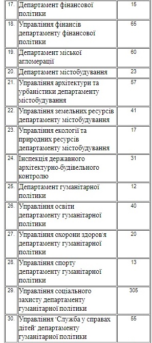 Згідно із документом, чисельність апарату виконавчого комітету становитиме 47 осіб. Також найбільше штатних посад передбачено у: