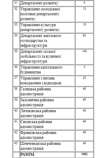 Гранична кількість працівників Львівської міськради не змінилася і становить 1982 особи.
