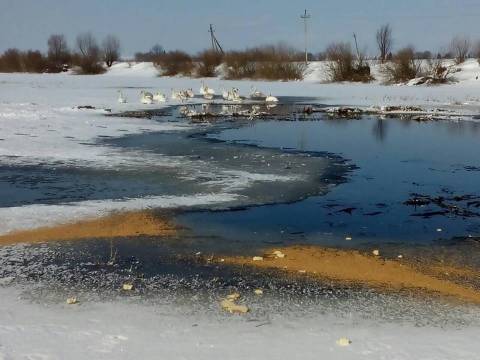 В ополонці місцевої ріки, площею 100 м², плавали 67 лебедів.