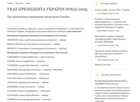 Про це йдеться в указі Президента України від 21 листопада 2025 року.