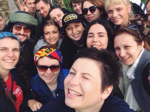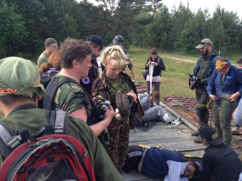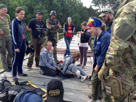 Щойно "прекрасна половина людства" поміж участників тренінгу встигла вийти з автобуса, як за їх спинами почувся наростаючий свист, який поволі переріс в галас – це виснаженні навчаннями (а хтось і алкоголем) українські військові чекали на відправлення у зону АТО.