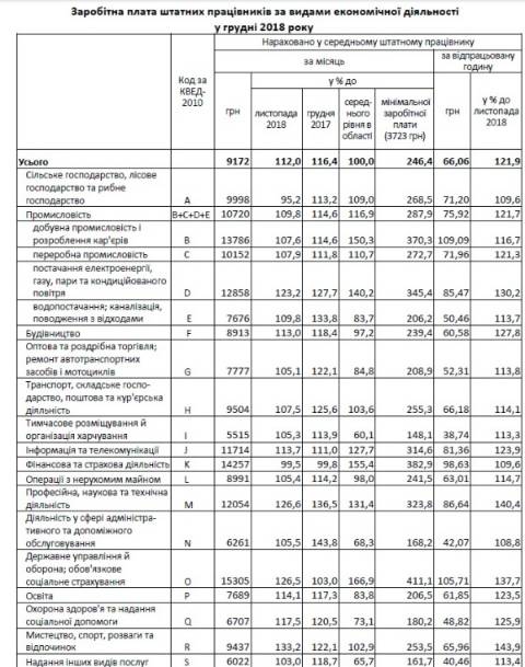 Порівняно з листопадом 2018 року, середня зарплата одного працівника збільшилася на 12%, з груднем 2017 року – зросла на 16,4%.