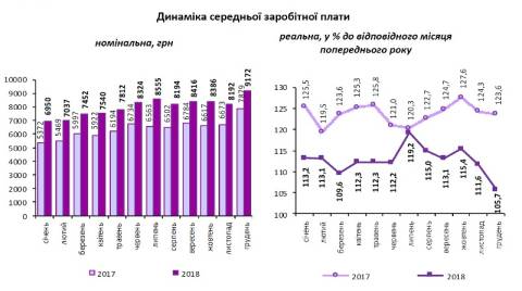 Зокрема, за одну відпрацьовану годину працівникові було нараховано в середньому 66,06 грн. А у 2018 році, порівняно з 2017 роком, реальна заробітна плата зросла на 12,7%.