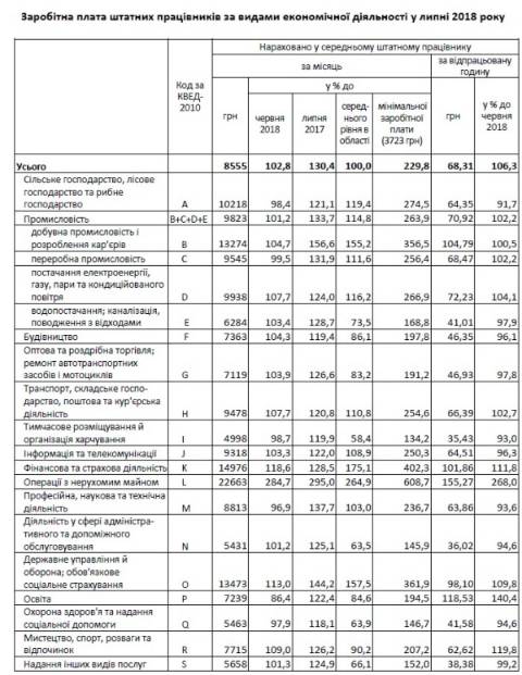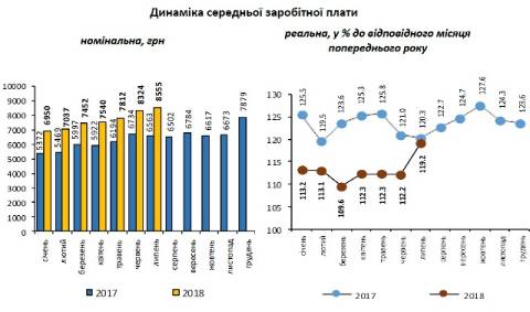 Порівняно з червнем, середня зарплата одного працівника зросла на 2,8%, з липнем 2017 року – на 30,4%.
