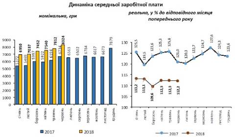 Порівняно з травнем, середня зарплата одного працівника зросла на 6,6%, з червнем 2017 року – на 23,6%.