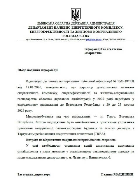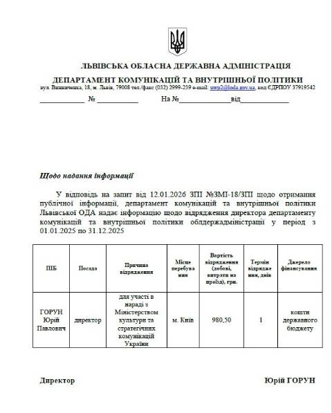 Всього на проїзд та проживання чиновниці під час цих відряджень з бюджету Львівщини не виділили жодних коштів: