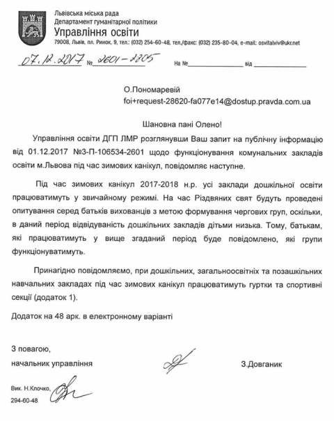Про це йдеться у відповіді Львівської міської ради на запит голови Батьківської ради Львівщини Олени Пономаревої.