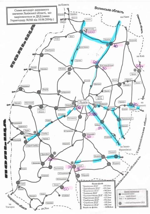 Сайт в Vgorode отримав скановане зображення карти автомобільних доріг Львівщини, на яких буде відбуватися ремонт критичних ділянок.