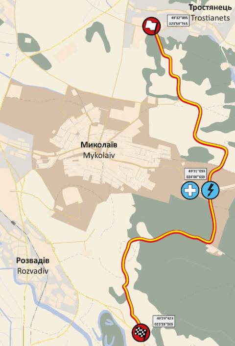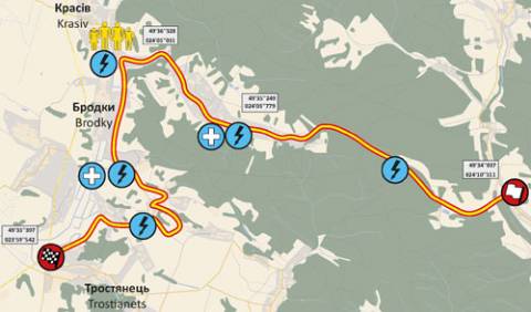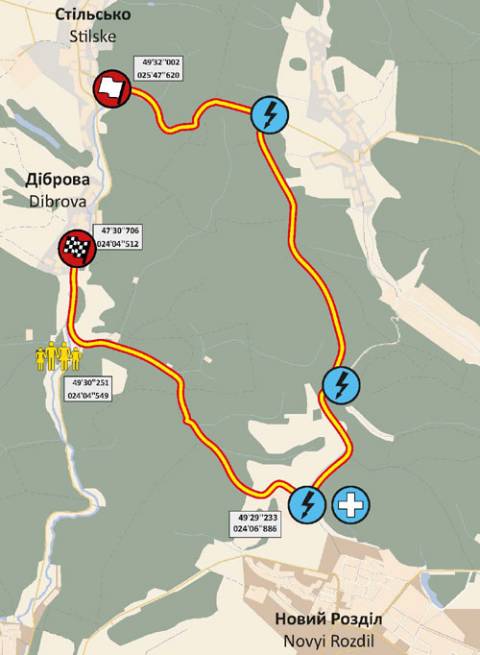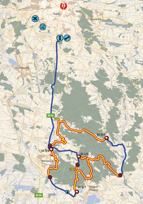 Загальна протяжність ралі − 420 кілометрів, з них 149,8 бойових (на яких змагатимуться екіпажі). На схемах позначені жовтим з червоним кольорами.