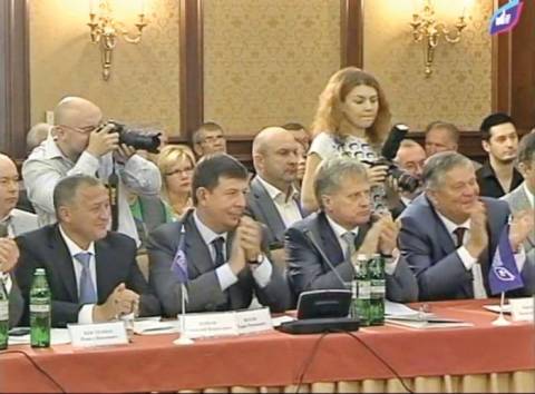 А ось і фотографія, де Тарас Козак бере участь у круглому столі на тему приєднання України до Митного союзу та аплодує російському президенту Путіну.