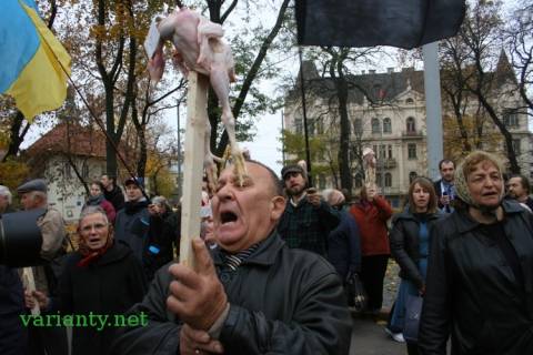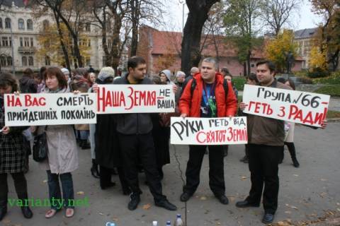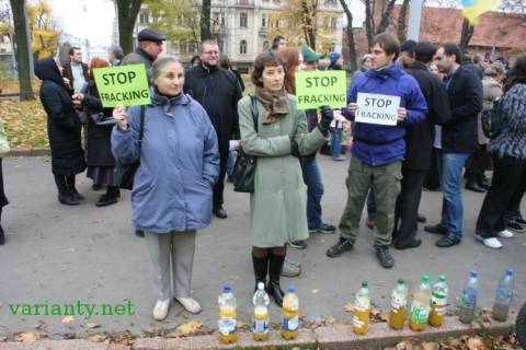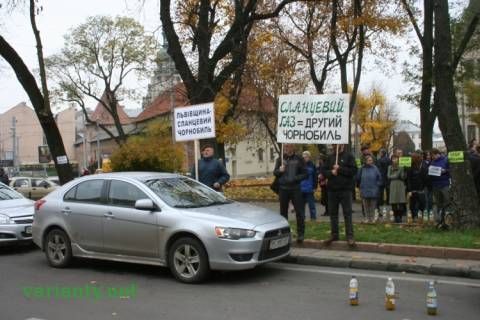 Акція протесту "Сланцевий коктейль для депутата" біля Львівської обласної ради.