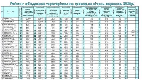 За підсумками фінансових показників дев’яти місяців 2020 року Львівська ОДА сформувала рейтинг об'єднаних територіальних громад області.