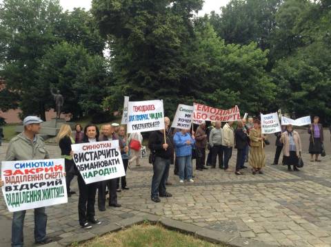 Сьогодні під стінами Львівської облдержадміністрації зібралися працівники пологового на Батальній та хворі на ниркову недостатність.