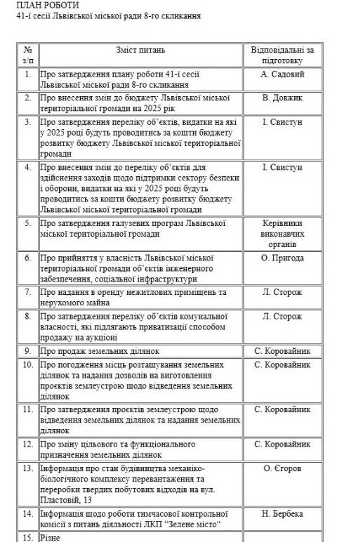Серед питань, які розглядатимуть депутати, – внесення змін до бюджету Львівської міської територіальної громади на 2025 рік, затвердження галузевих програм Львівської МТГ, а також інформація про стан будівництва механіко-біологічного комплексу перевантаження та переробки твердих побутових відходів на вул. Пластовій, 13.