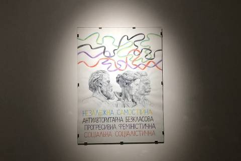 Презентація "Стрічок та трикутників" зібрала разом максимально різних людей: і в плані зовнішнього вигляду, і в плані віку, і в плані політичних поглядів. Давид Чичкан почав розповідати про свої роботи з другої зали, де глядачі могли побачити купюри уявної України, портрети Лесі Українки, проєкт муралу та зображення кольорових трикутників. Спочатку художник детально розповів авдиторії про справжні ліві образи Лесі Українки, Івана Франка та Михайла Драгоманова, та про їхні цінності, які перекликаються з ідеями Давида про Україну. "Леся була атеїсткою, але про це вам мало хто розповість", – стверджував Давид.