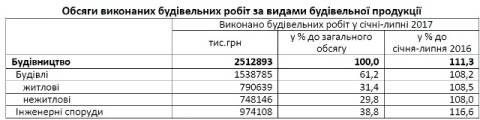 Відтак, індекс будівельної продукції у січні-липні 2017 року становив 111,3%, порівняно з першими місяцями 2016 року.