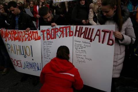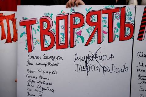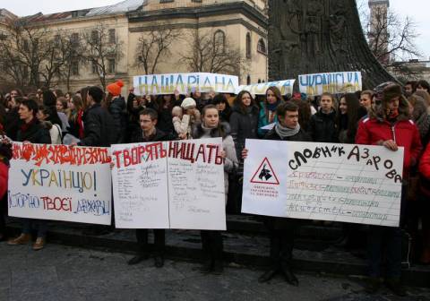 Сьогодні, 21 лютого, у Львові відбулася студентська акція «Я знаю, хто творить/нищить історію моєї держави».