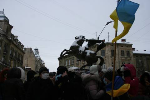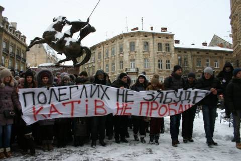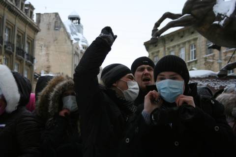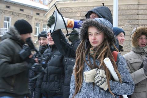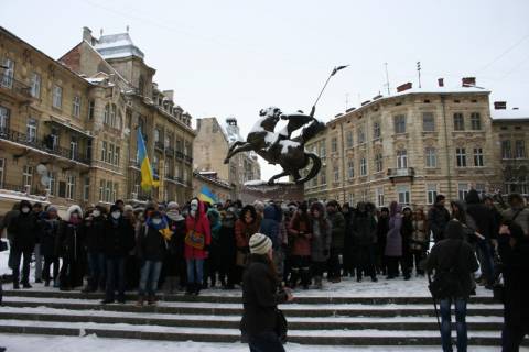 Близько 200 студентів зібралися під стінами будівлі обласної міліції, вимагаючи відкликати "Беркут" з Києва.