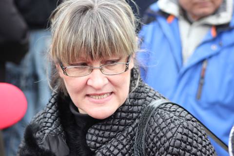 Туди ж прийшла велика група молодиків, на чолі з депутатами "Свободи" з Львівської міськради, які викрикували гасла на кшталт "Комуняку на гіляку", "Ганьба", "Смерть червоним окупантам" і намагалися зірвати мітинг.