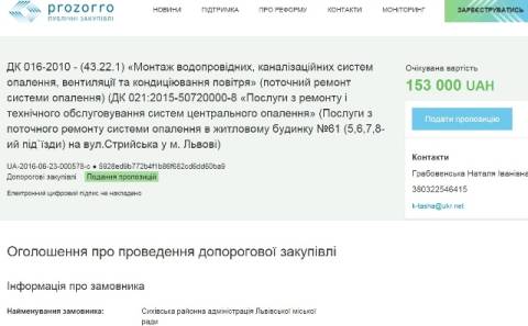 Це було опубліковано на сайті електронних закупівель ProZorro.