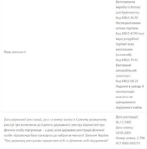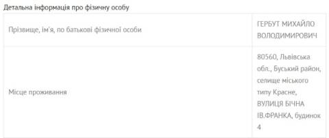 За даними Єдиного державного реєстру юридичних осіб, фізичних осіб-підприємців та громадських формувань, Гербут займається виготовленням виробів з бетону для будівництва.
