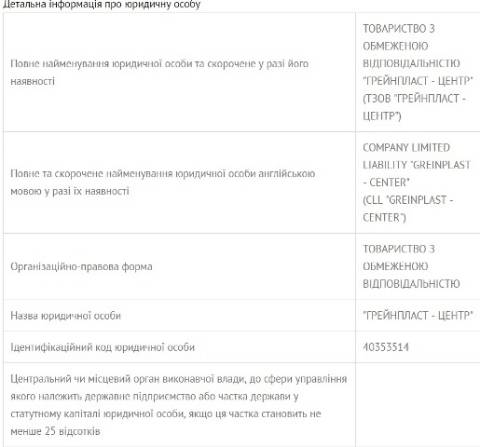 За даними Єдиного державного реєстру юридичних осіб, фізичних осіб-підприємців та громадських формувань, ТзОВ «Грейнпласт» зареєстроване у селі Шкло на Яворішині. Займається виробництвом сухих будівельних сумішей, будівельних металевих конструкцій і частин конструкцій, покриттям підлоги й облицюванням стін, різними роботами із завершення будівництва.