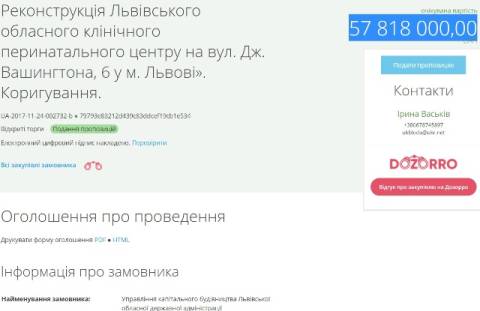Управління капітального будівництва Львівської обласної державної адміністрації проводить закупівлю на коригування реконструкції Львівського обласного клінічного перинатального центру на вул. Дж. Вашингтона, 6 у Львові.