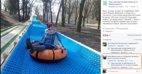 "Друзі, ми раді, що вам так сподобалася Турбо гірка! Просимо вибачення за незручності, спускатися з гірки можна лише дітям від 8 років. В одному тюбі може спускатися лише одна людина. Це заради вашої ж безпеки! У зв'язку з поганими погодніми умовами гірка сьогодні закривається раніше. Дякуємо за розуміння", – йдеться у повідомленні опублікованому близько сімнадцятої години.