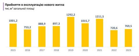 Минулого року у Львівській області прийняли в експлуатацію 769,5 тисячі м² загальної площі нового житла, що на 6,8% більше, ніж у 2022 році.