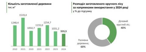 Крім цього, за даними Держлісагентства, в області торік заготовили 939,9 тисячі м³ деревини. За обсягом заготовленої деревини область займала 6 місце серед регіонів України у 2024 році (після Житомирської, Рівненської, Чернігівської, Волинської та Київської областей), а її частка становила 6,3% у загальному обсязі заготовленої деревини в Україні.