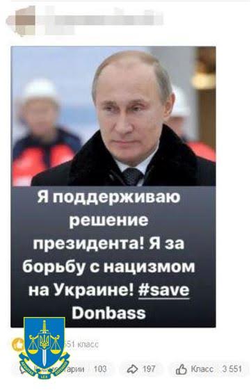 "Троє чоловіків на своїх облікових сторінках у соцмережі "Однокласники" систематично розміщували пости та поширювали інформацію із критикою українців, які підтримують ідеї незалежного від Росії політичного курсу країни, української влади й України як держави в цілому.