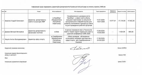 Всього на проїзд та проживання для чиновників мерії під час цих відряджень з бюджету Львова виділили 54 124,10 грн. Вони побували у Києві та Німеччині.