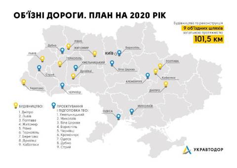 У 2020 році Укравтодор планує будівництво та реконструкцію 9 об’їздних шляхів загальною протяжністю 101,5 км. Зокрема, у 2020 році розпочнуться роботи з будівництва північної об’їзної Львова та північної об’їзної Тернополя