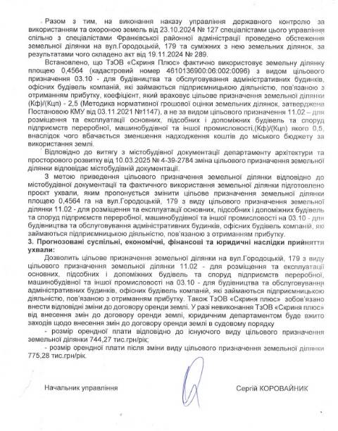 Нова орендна плата після зміни цільового призначення ділянки становитиме 775,28 тис. грн в рік.