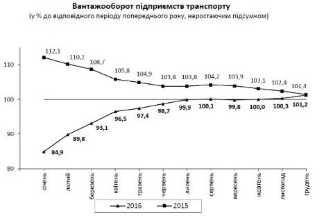 Щодо перевезення вантажів, то минулого року вантажооборот підприємств транспорту становив 10515,9 млн.ткм і, порівняно з 2015 роком, збільшився на 1,2%. Усіма видами транспорту було перевезено 14283,5 тис.т вантажів, що на 6,4% більше обсягу 2015 року.