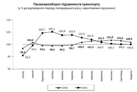 Залізничним транспортом буловідправлено 29,9 млн. пасажирів, що на 3,6% менше, ніж у 2015 році,а послугами автомобільного транспорту скористалися 132,9 млн. пасажирів, що на 12,8% менше, ніж у 2015 році.