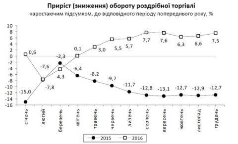Нагадаємо, у листопаді 2016 року, порівняно із минулим місяцем, на 3,9% зменшилася роздрібна торгівля.