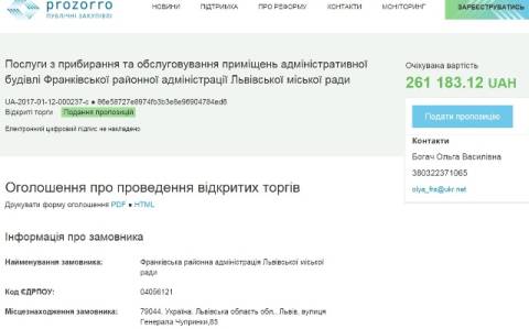 Відтак, Франківська районна адміністрація Львівської міської ради проводить закупівлю на послуги з прибирання та обслуговування приміщень адміністративної будівлі Франківської райадміністрації.