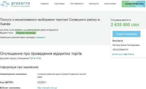 Відтак, Сихівська районна адміністрація Львівської міської ради проводить закупівлю на послуги з механізованого прибирання території Сихівського району Львова.