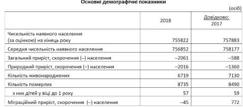 Зокрема, у Львові народились 6 719 дітей, що на 411 дітей або на 5,8% менше, порівняно з 2017 роком, померло 8 735 осіб, що на 245 осіб або на 2,9% більше.