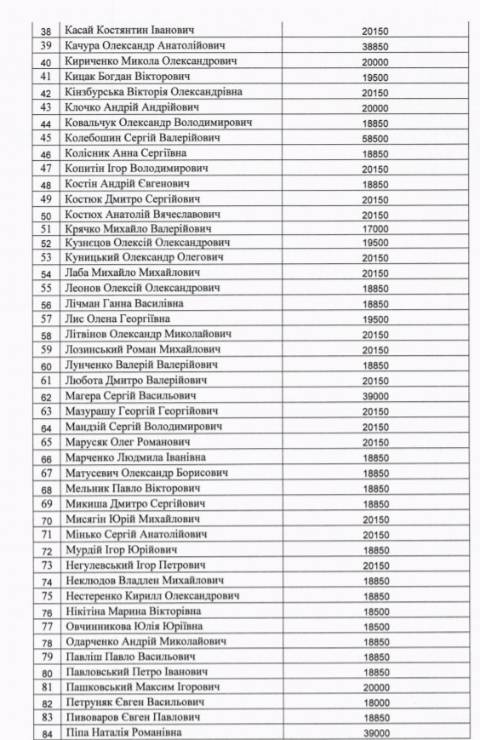 Натомість не отримали виплати такі нардепи: Ірина Верещук (Слуга народу), Святослав Вакарчук (Голос), Андрій Герус (Слуга народу), Андрій Кіт (позафракційний), Ярослав Дубневич (За майбутнє), Мар’ян Заблоцький (Слуга народу), Юрій Загородній (Опозиційна платформа – За життя), Олена Кондратюк (позафракційна), Степан Кубів (Європейська Солідарність), Тарас Козак (Опозиційна платформа – За життя), Микола Княжицький (Європейська Солідарність), Андрій Лопушанський (Європейська Солідарність), Михайло Цимбалюк (Батьківщина), Ростислав Тістик (Слуга народу), Андрій Парубій (Європейська Солідарність) – (у січні лютому отримав 39 000 грн), Остап Шипайло (Слуга народу) – (у січні лютому отримав 38 350 грн), Софія Федина (Європейська Солідарність) – (у січні лютому отримала 38 350 грн), Ярослав Юрчишин (Голос) – (у січні лютому отримав 39 000 грн).