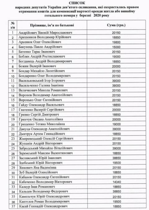 Відтак, у березні цього року 107 народних депутатів ВРУ дев'ятого скликання отримали кошти для компенсації вартості оренди житла чи готельного номера. Натомість у січні-лютому цього року їх було 147.