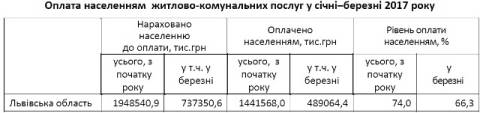 Загалом на кінець березня 2017 року заборгованість населення за газопостачання (включаючи борги попередніх періодів) становила 457 млн грн, за централізоване опалення та гаряче водопостачання – 148,5 млн грн, за утримання будинків і споруд та прибудинкових територій – 73,1 млн грн, за вивезення побутових відходів – 5,5 млн грн, за централізоване водопостачання та водовідведення – 4,4 млн грн.