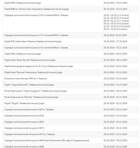 Як пояснили в управлінні освіти Львова, школи можуть самостійно приймати рішення про час канікул, через це у частині шкіл їх змістили на тиждень раніше.