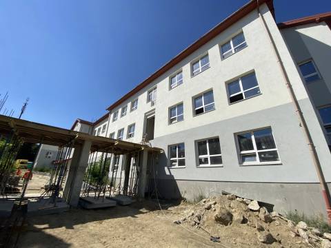 Наразі більш ніж на 90% завершено облаштування інженерних мереж та фасаду школи, а також на 95% встановлено внутрішні двері. Нині тривають внутрішні облицювальні роботи.
